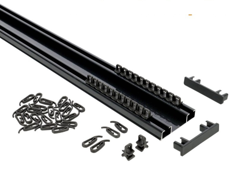 • 8cm-enként 1-1db csúszkával, G kampóval 1 sínben. Ez könnyedén siklik a sínben, csak kevéssé súrlódik, ezáltal könnyű a függöny mozgatása.