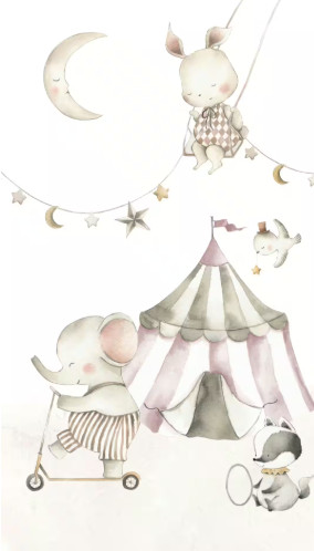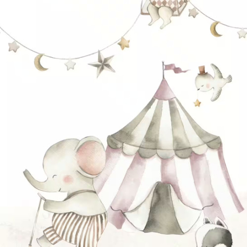 Mivel maga a minta is mesebeli és cirkuszos, jól jön, ha a szoba dekorációja is ehhez igazodik: zászlócskák, girlandok, cirkuszi állatok figurákban, plafonon lebegő dekorok.